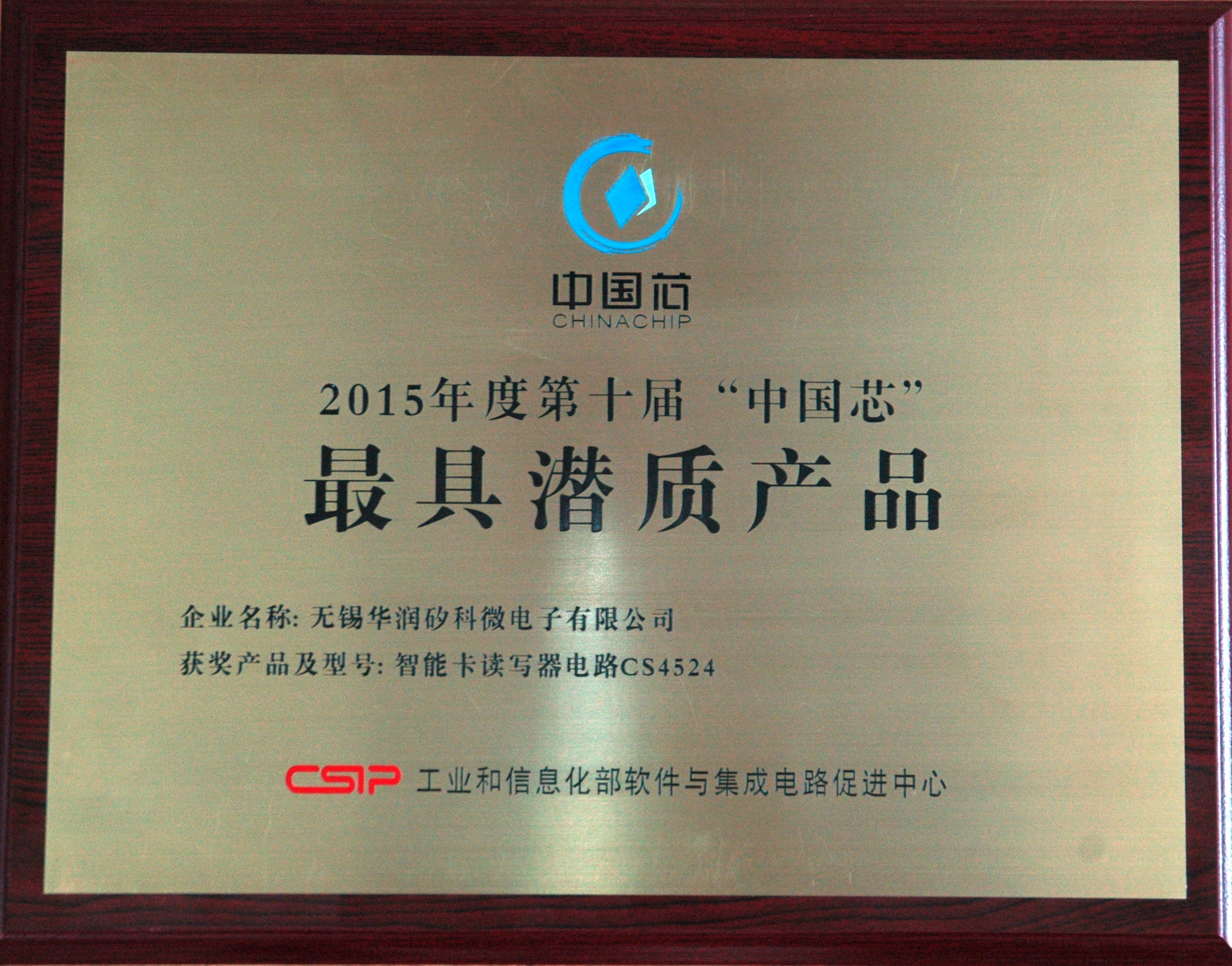 11月26日,由工信部電子信息司及軟件與集成電路促進中心主辦的“2015中國集成電路促進大會”在廈門召開。在第十屆“中國芯”評選中,華潤矽科的《智能卡讀寫器電路CS4524》獲最具潛質(zhì)產(chǎn)品獎。